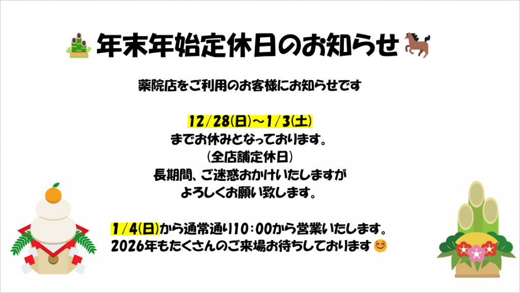 年末年始お休みのお知らせ🐎🎍