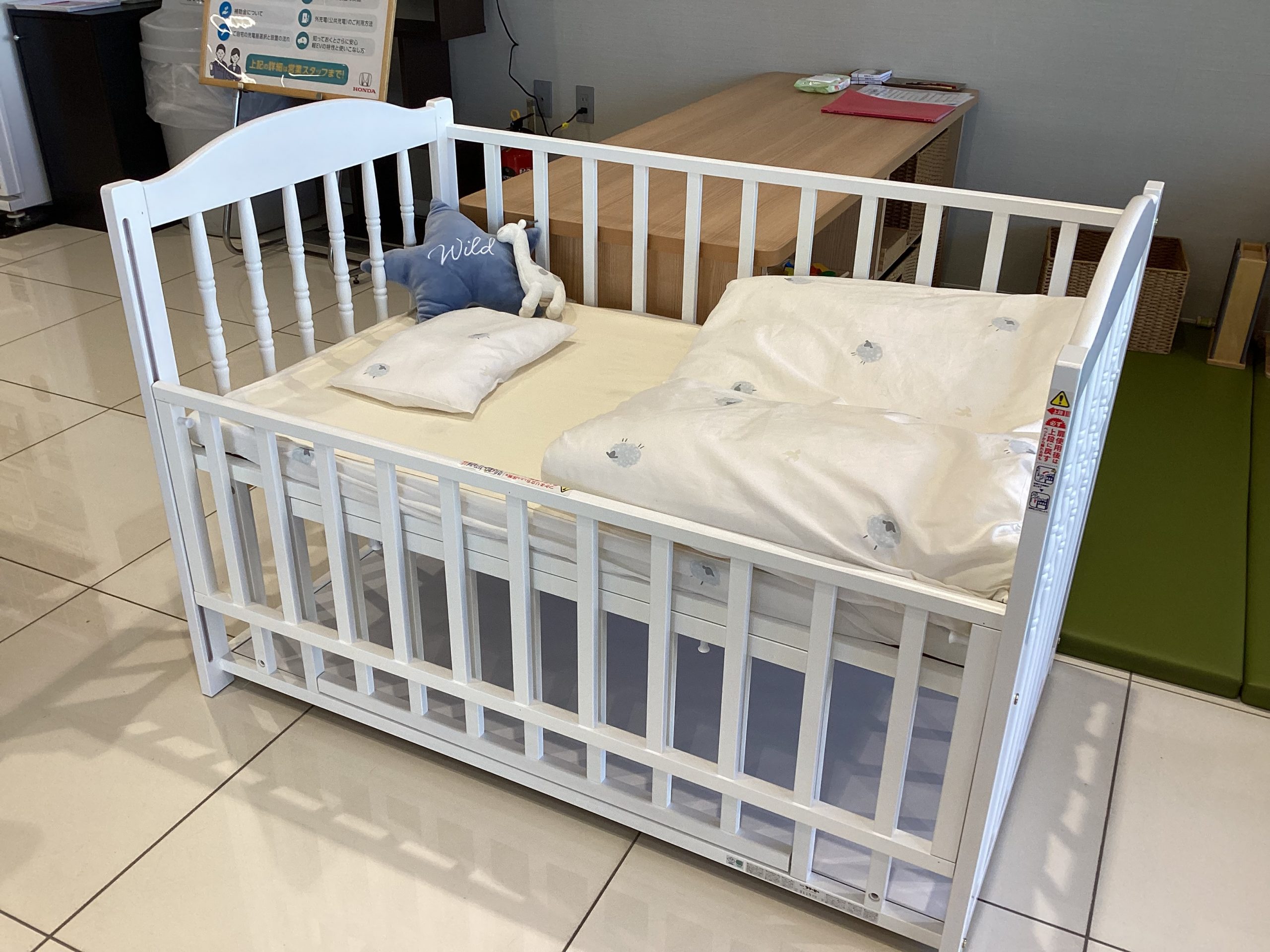 おむつ替えスペース・ベビーベッド・絵本も新しくしました🐣🐣快適にお過ごしいただけるかと思います♪