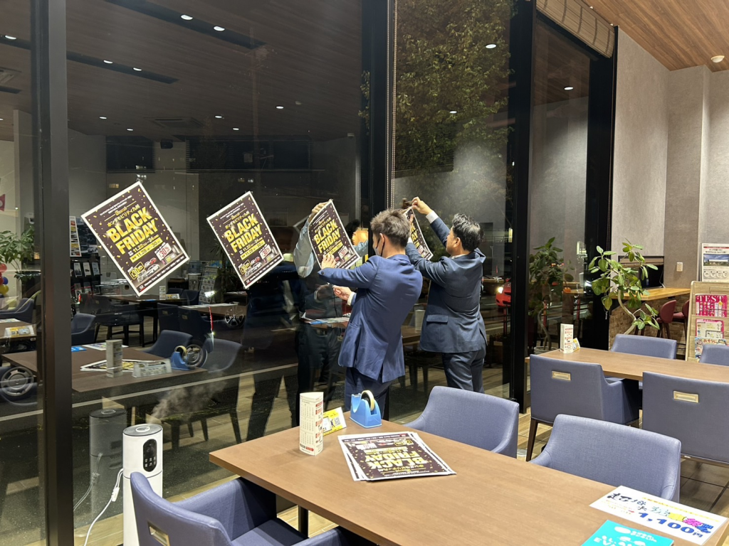 ⬆チラシをお洒落な角度で貼っている久留米スタッフ🤣🤣