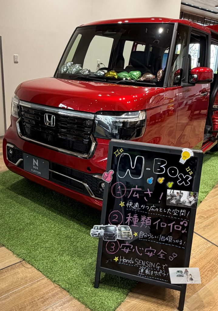 ただいま、店内には赤色のN-BOXが展示されています!