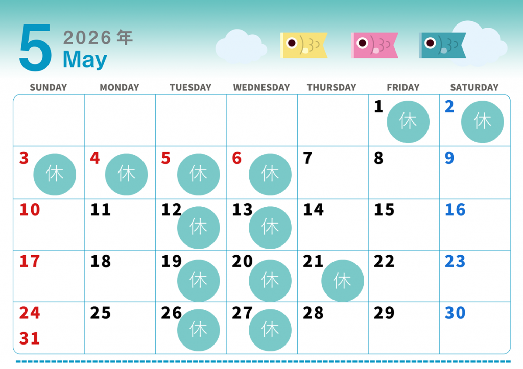 GW休暇で5/1(金)から5/6(水)までお休みをいただきます。
