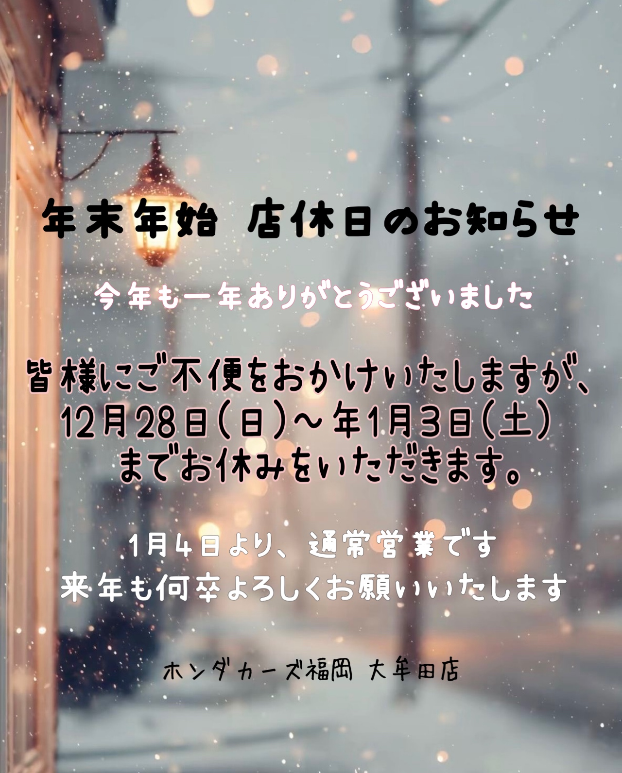年末年始 店休日のお知らせ☃️