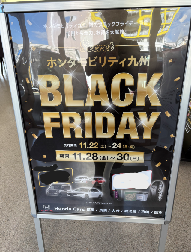 さて、今週末11/28(金)・29(土)・(日)で、ホンダモビリティ九州BLACK FRIDAYを開催中!