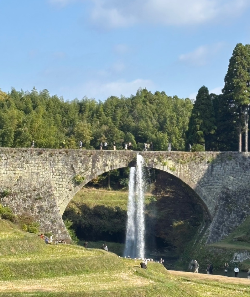 ちょうど放水されているタイミングだったようでよかったですね♪通潤橋らしい写真ですね!