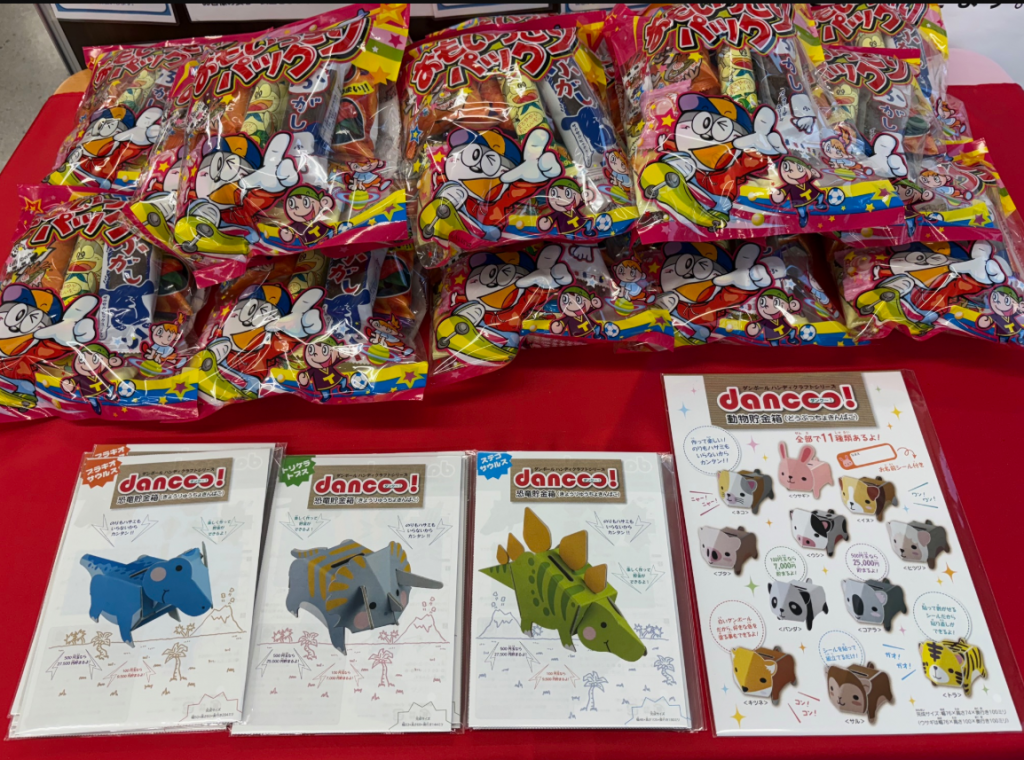 また、お子様にはお菓子や工作できる貯金箱をご用意しております!