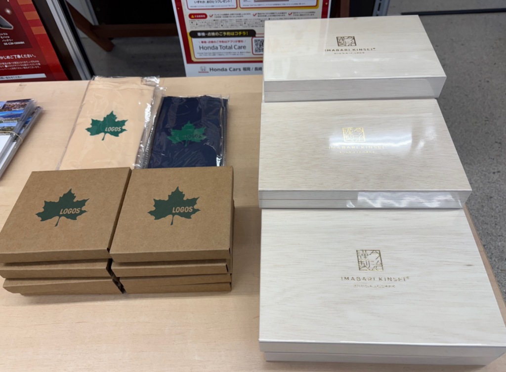 また、車検予約特典でロゴスのオリジナルエコバックをプレゼント!Webで車検予約していただいたお客様には今治をタオルをプレゼントしております!
