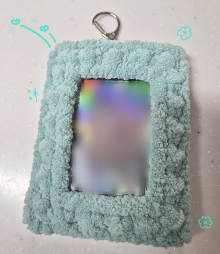 トレカ専用のデコキットにふわふわの毛糸を巻き付けていくようにつくるのですが、