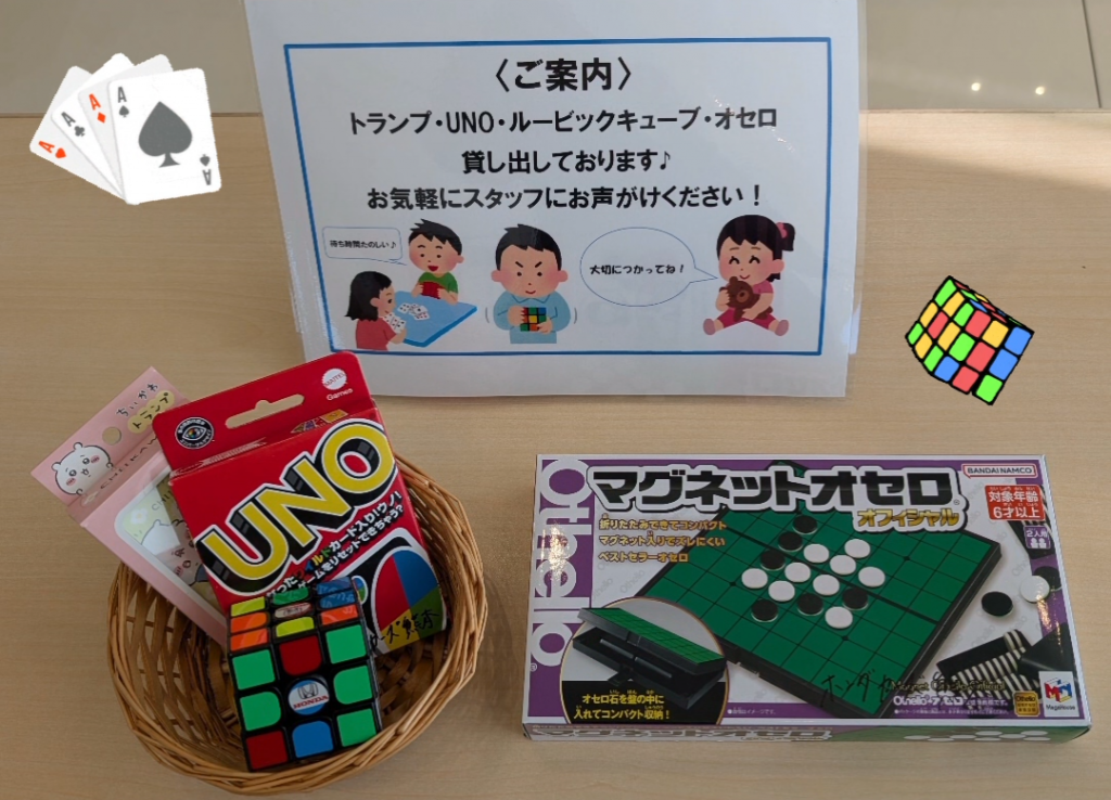 ラインナップは、オセロ・トランプ・UNO・ルービックキューブの4つです🎲