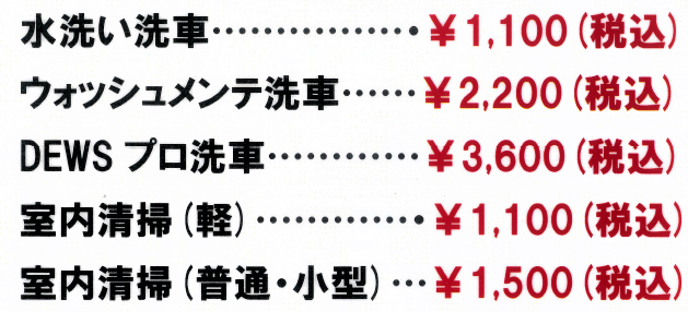 誠に勝手ながら、水洗い洗車及び車内清掃につきまして、2025年11月より価格改定させていただきます。