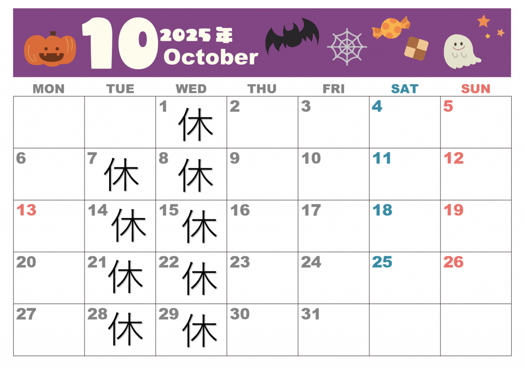 10月の営業は下記の通りとなっております⤵️
