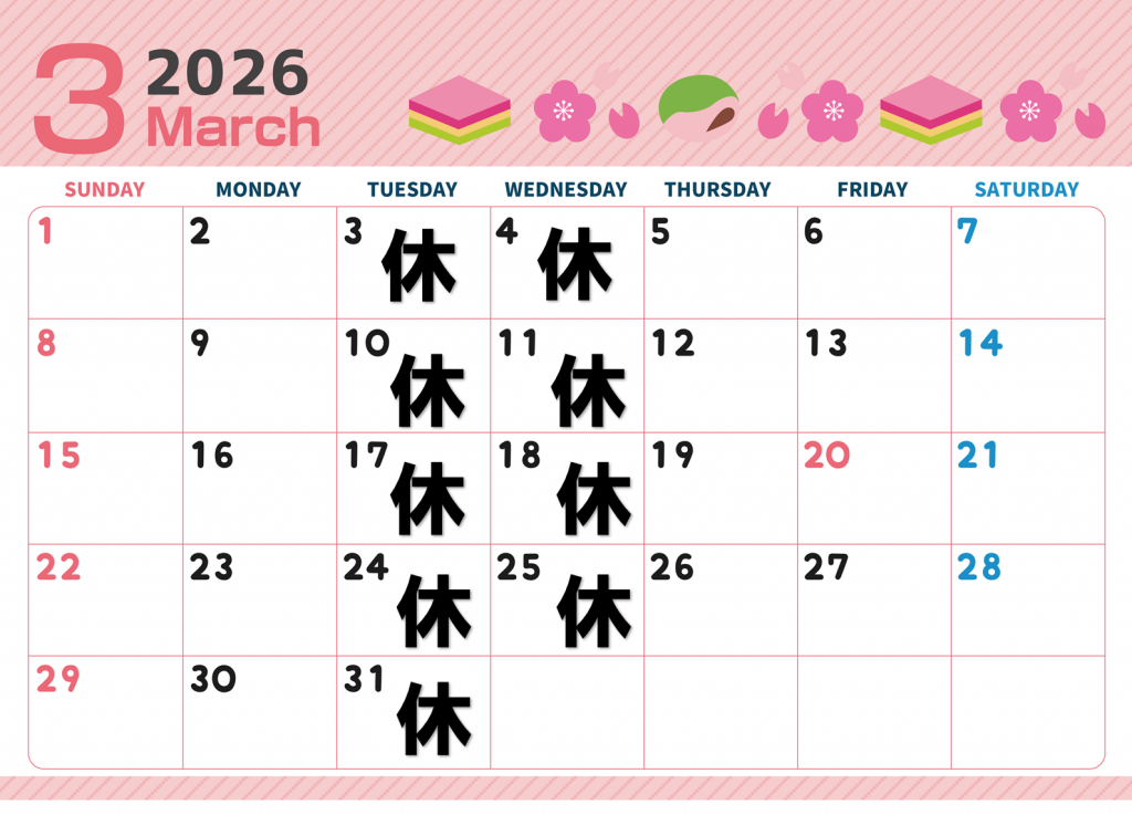 3月のお休みは上記の通りとなっております⤴️⤴️