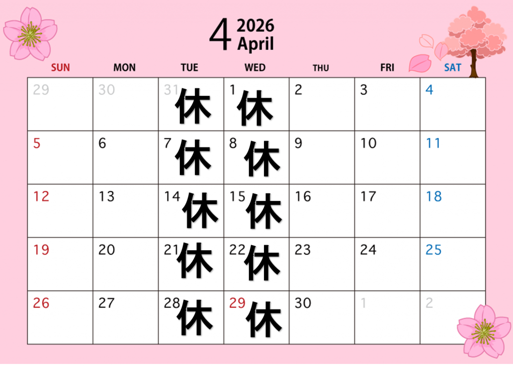 4月のお休みは上記の通りとなっております⤴️⤴️