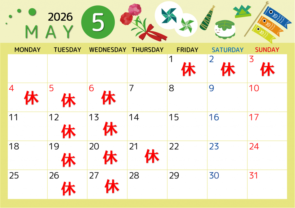 5月は営業日が少ないですが、今月もスタッフ一同頑張って参ります💪