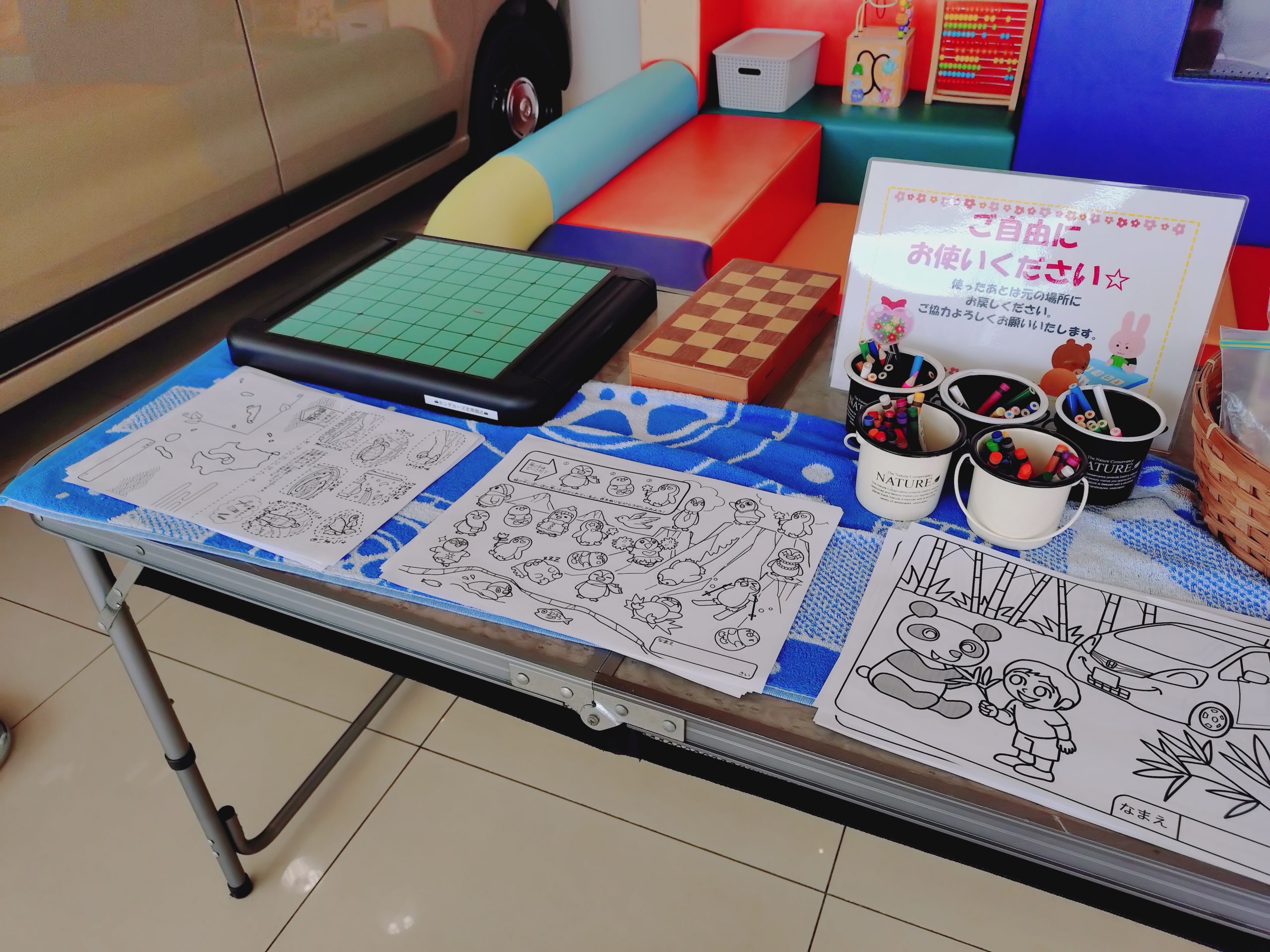 また、ぬり絵や、大人の方でも遊んでいただけるオセロやチェスなどもありますので、ご自由にお使いください😍