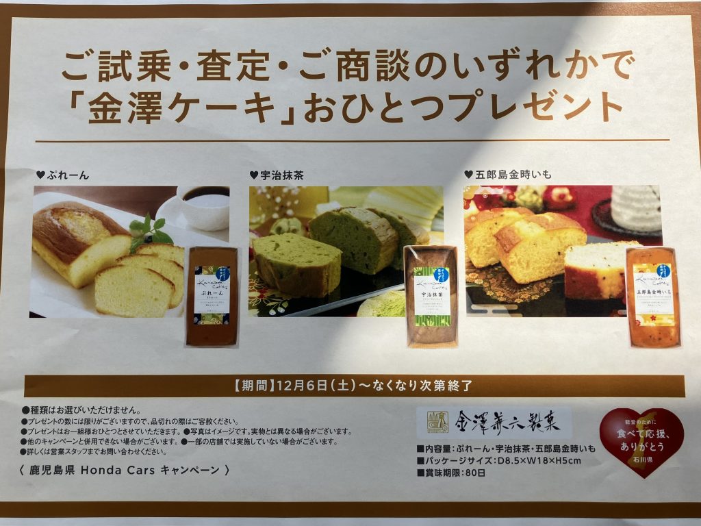 ②ご試乗・査定・ご商談のいずれかで「金澤ケーキ」おひとつプレゼント