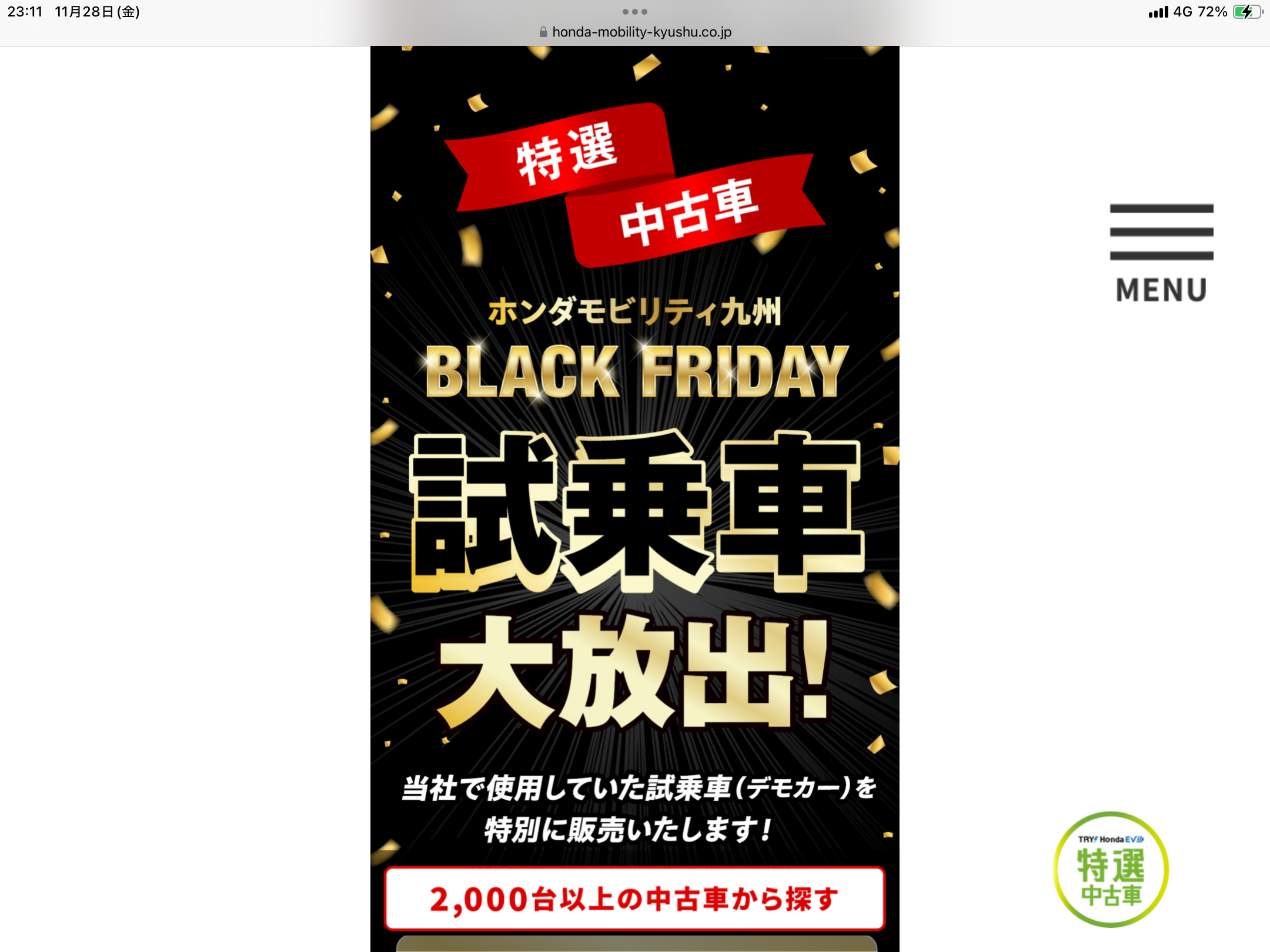 展示車等で使用していた極上中古車が在庫2000台!!!!