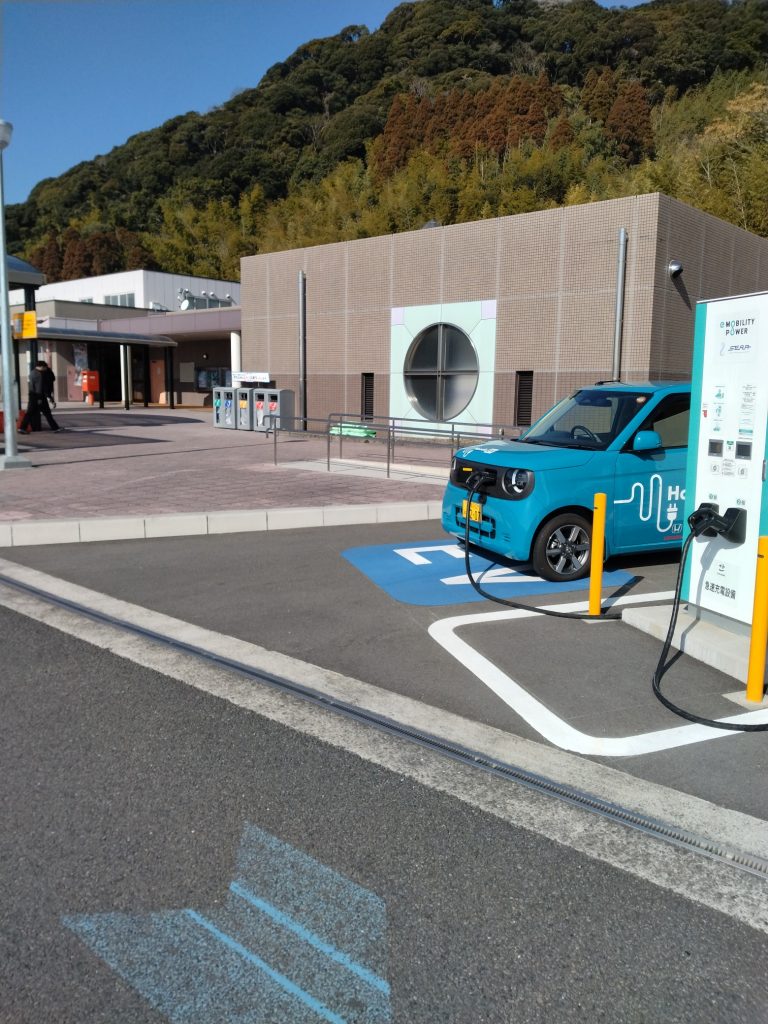 途中のサービスエリアのEVスタンドで充電中