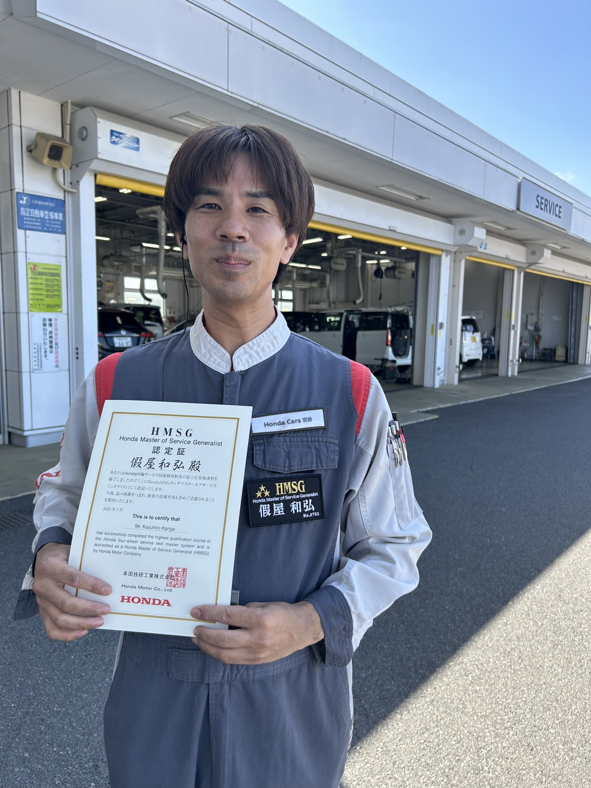 Hondaサービス技術の1級を取得し