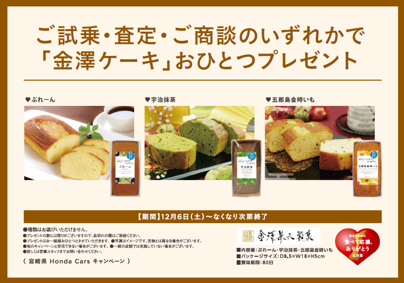 ✅『ご試乗・査定・ご商談』のいずれかで金沢ケーキおひとつプレゼント🤩