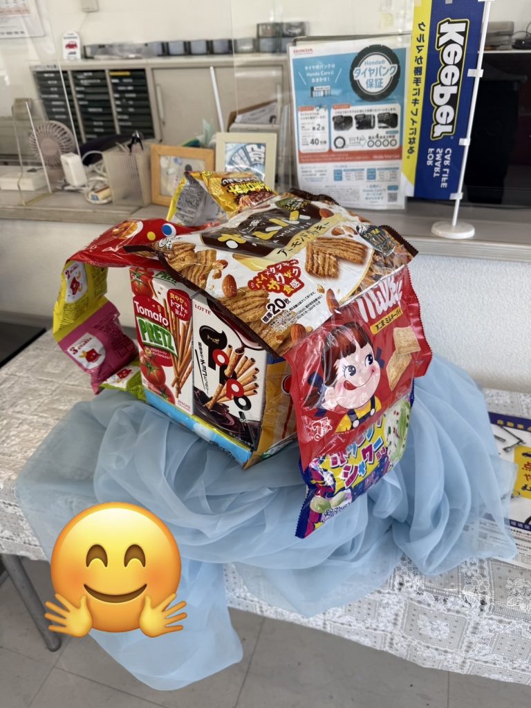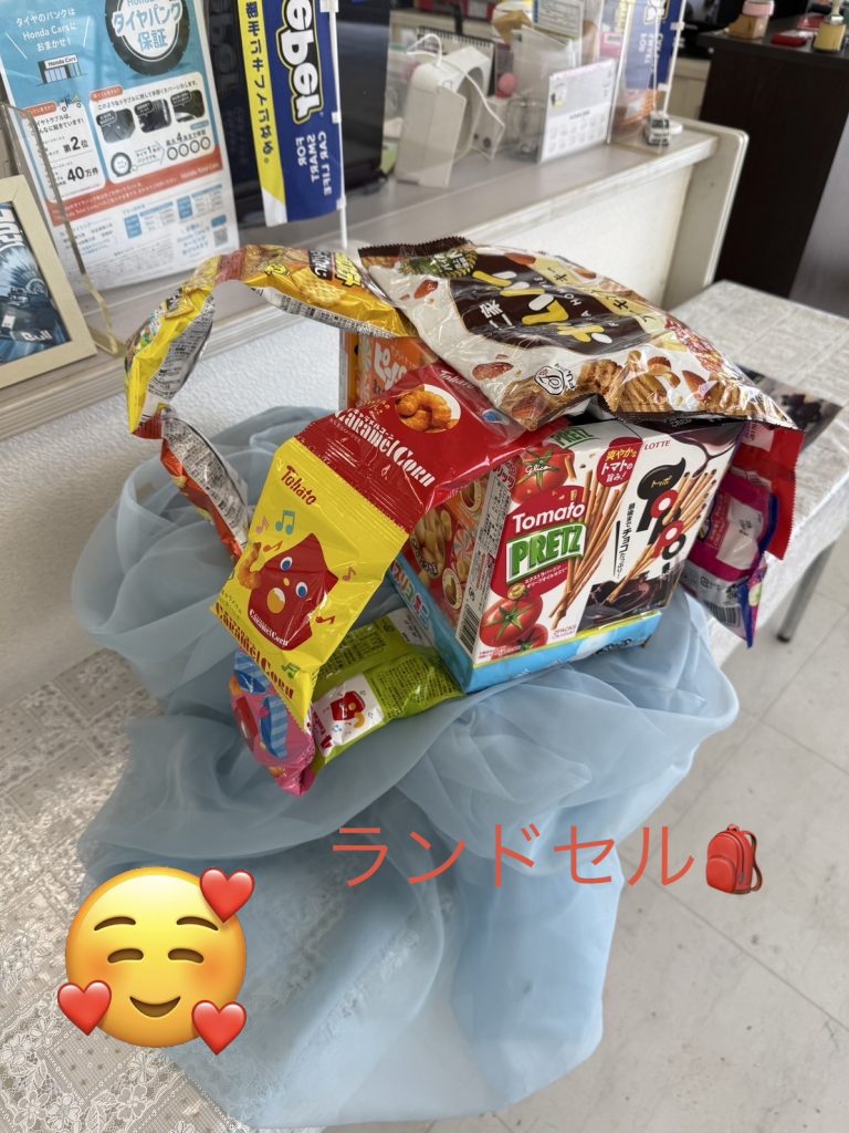 な、なんと、、、女性スタッフが『お菓子の★ランドセル★』を作ってくれました(^_-)-☆