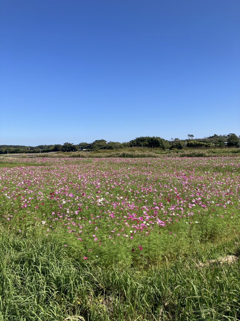 佐土原店の風物詩ともいえるコスモスもだいぶ満開に近くなってきました♪