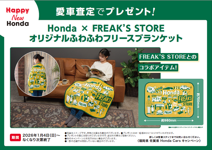 また、愛車の査定で、Honda × FREAK’S STORE オリジナルふわふわフリースブランケット