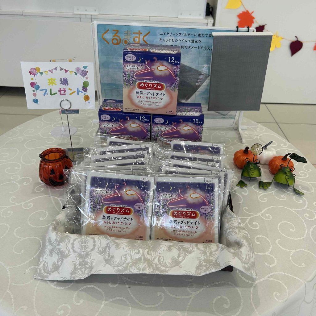 めぐりズムの首元あったかパックをご来店頂いた皆様にお配りしております!