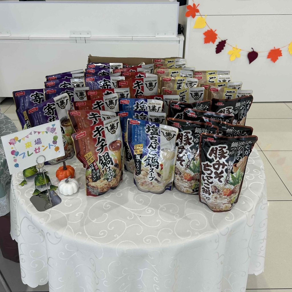 ご来場いただいた方にお鍋のスープをプレゼントしております(^^♪