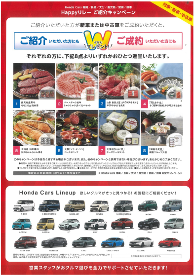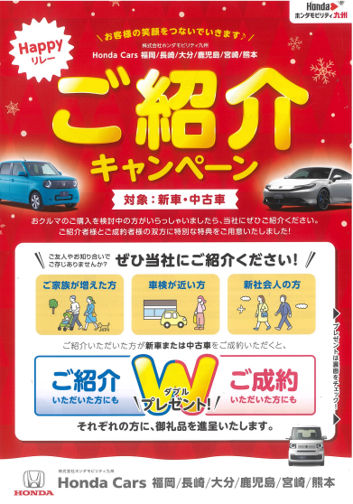 おクルマのご紹介によりご成約いただいたお客様へご紹介者様とご成約者様へ