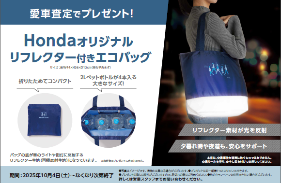 Hondaオリジナルリフレクター付きエコバックが愛車査定でプレゼントに