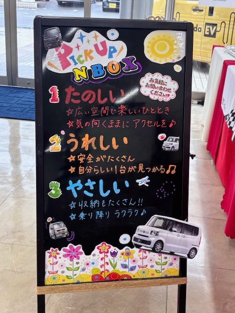 またN-BOXの良さをPickupしたPOPを作成しております!