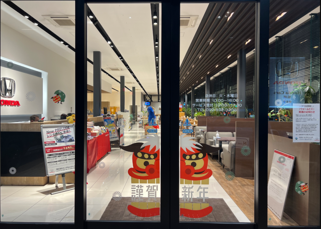 実は、この出入り口に貼られているシールは季節ごとに変わっていくので福重店に来られる際は