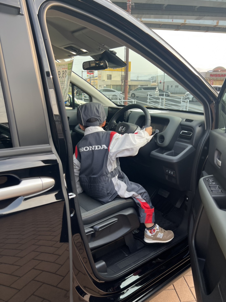 先日ご来店されたお客様のお子様がホンダのつなぎを試着してくれました💖