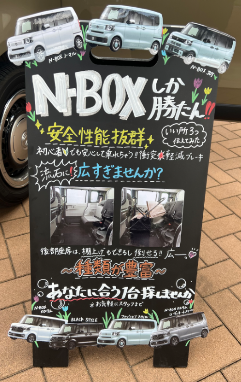 そしてそして!N-BOXの良さを詰め込んだボードを店内に置いてますっ🥰