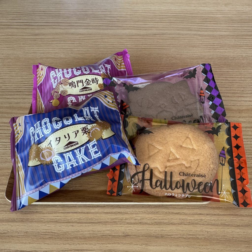 シャトレーゼさんのショコラケーキ・ハロウィンサブレをドリンクと一緒にご提供🍠🌰