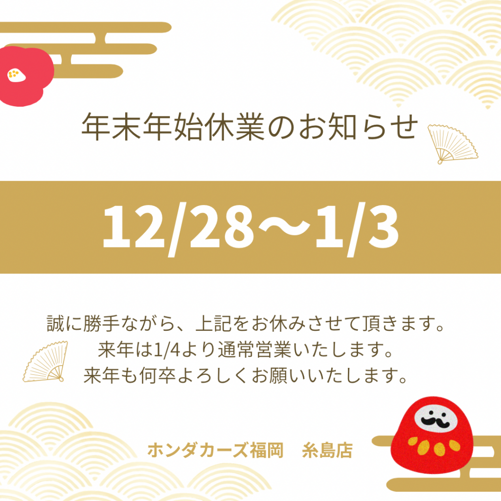 2025年12月28日(日)~2026年1月3日(土)を店休日とさせていただきます🎍
