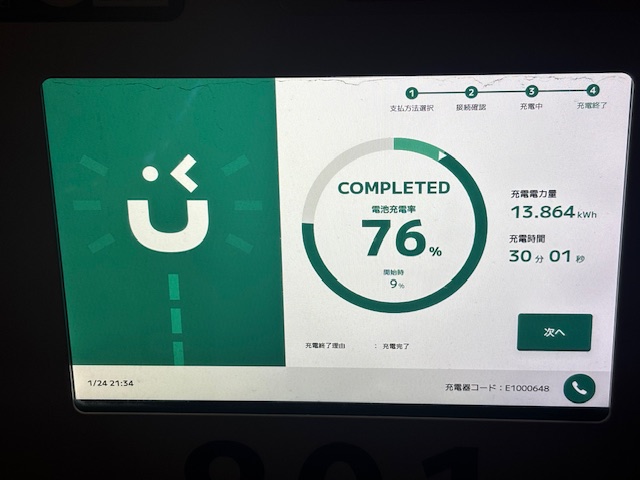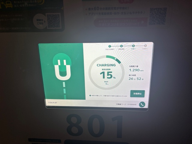 ガソリンスタンドは閉まっていましたが、充電出来ました🤩