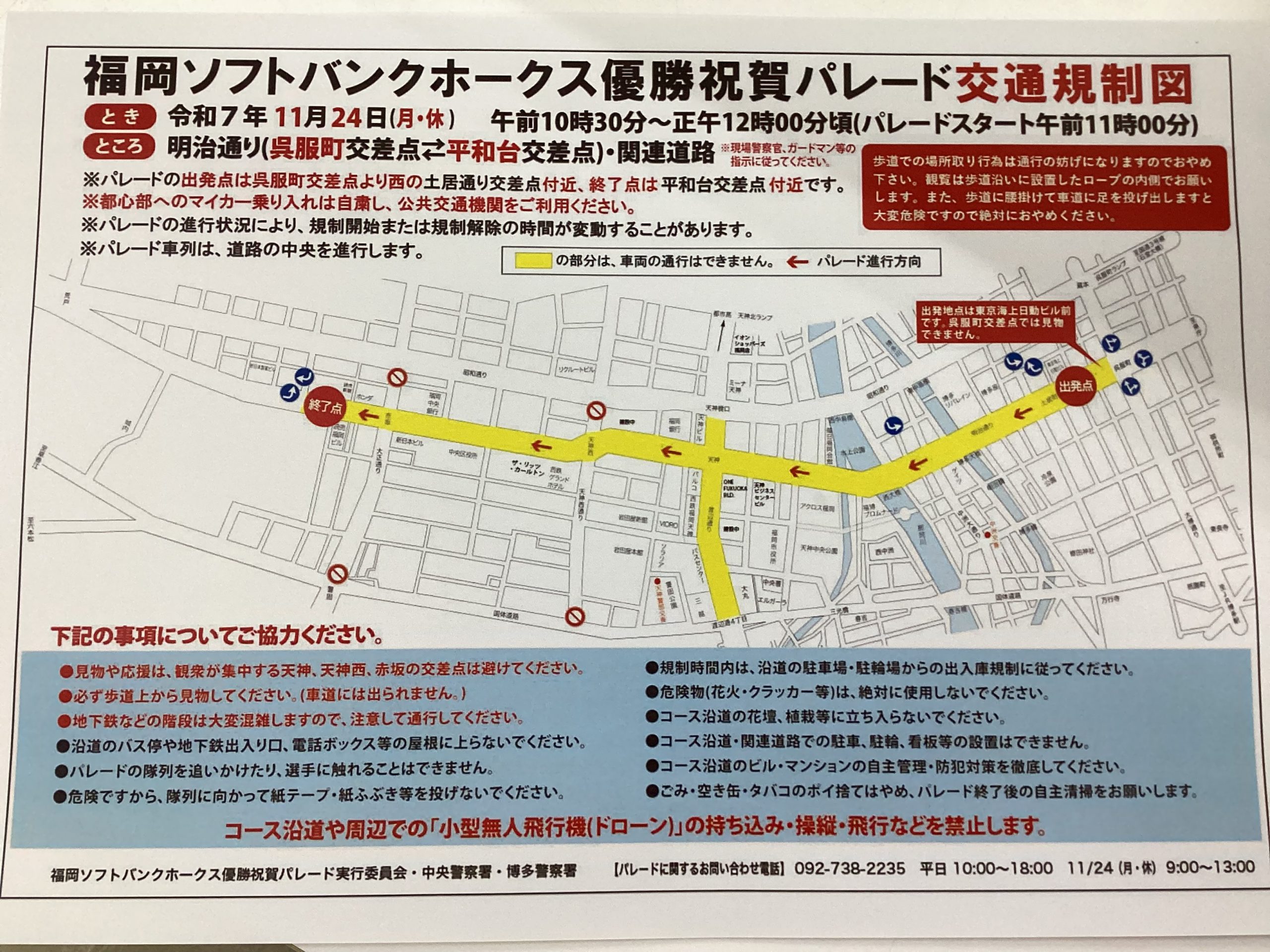 福岡ソフトバンクホークス優勝祝賀パレードに伴う交通規制
