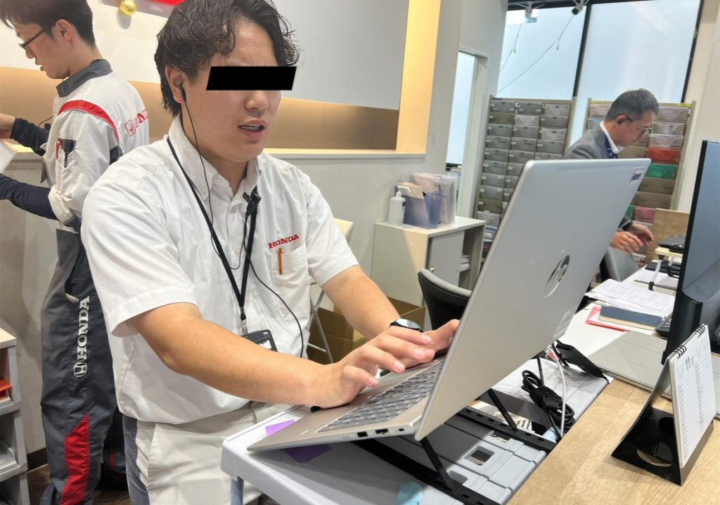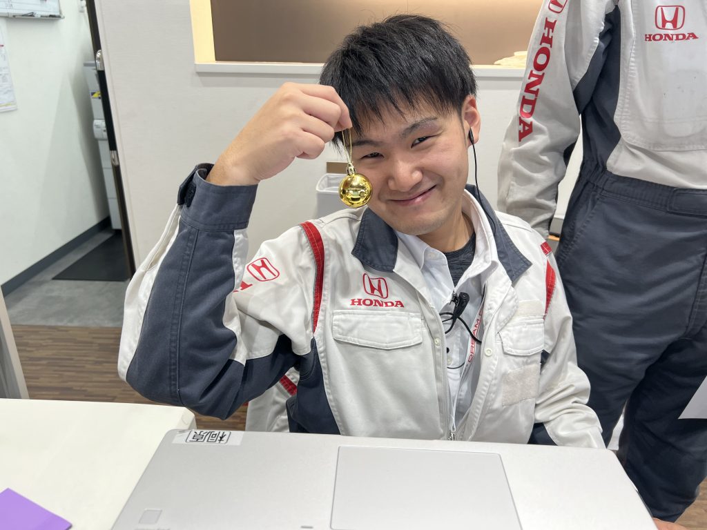 痛い痛いといいながらニコニコしてるので正直ほんとに痛いのかは謎ですが、治るまでは整備の仕事をお休みして、フロントとして頑張ってくれています🔥🔥🔥
