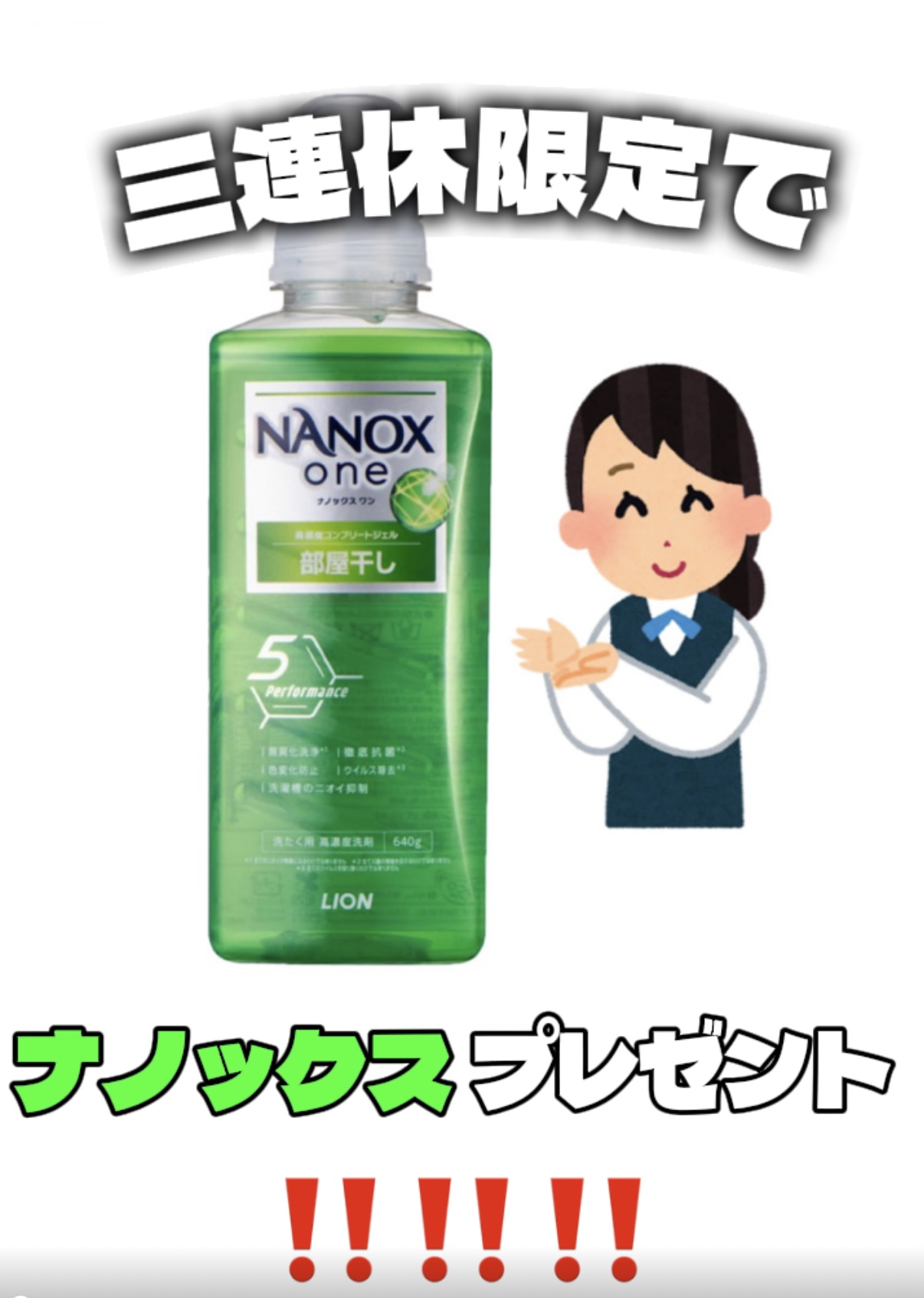 1日、2日、3日限定で部屋干し洗剤プレゼント!!!