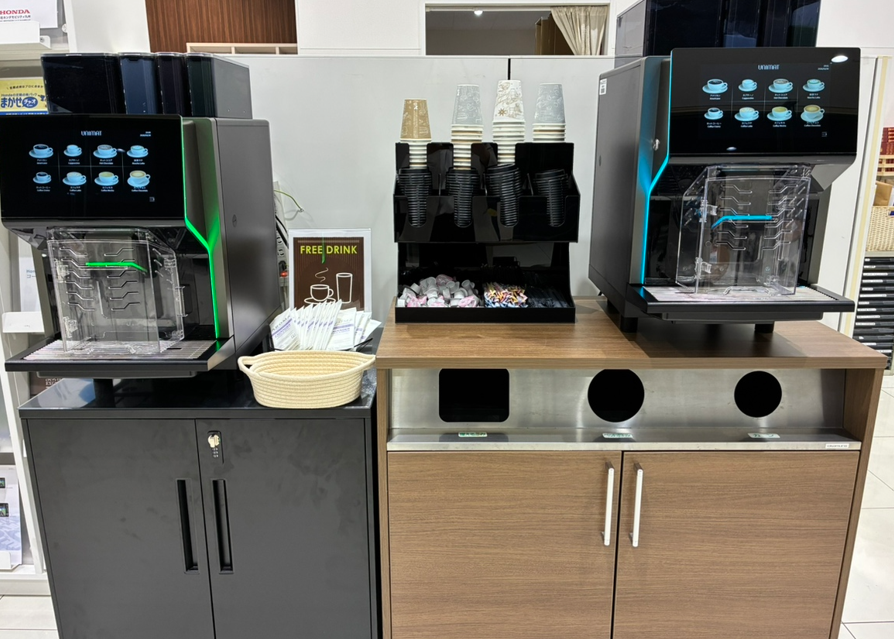 また、今までも設置していたフリードリンクの自販機も引き続きご利用いただけます!