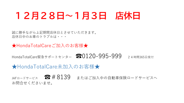 🚙 🚙 🚙 店休日のご案内 🚙 🚙 🚙