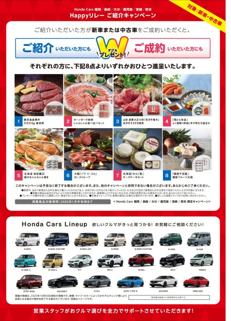 ご紹介者様とご成約者様の双方に下記8点よりいずれかお一つ贈呈いたします🎁