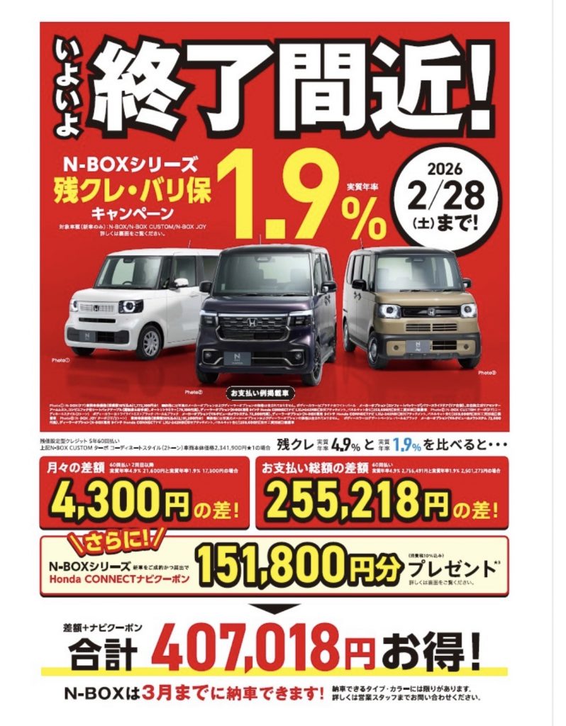 N-BOXシリーズの残クレ・バリ保 1.9%