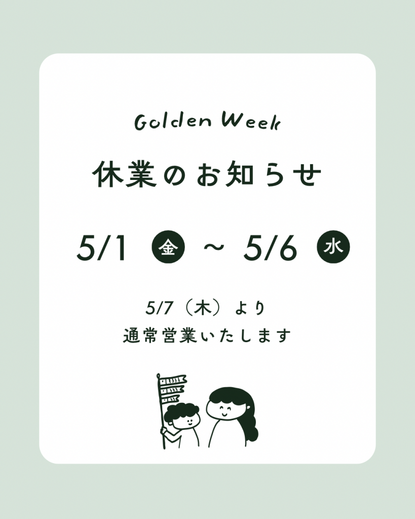 ここで、ゴールデンウイークの店休日のお知らせをさせていただきます👌🏻