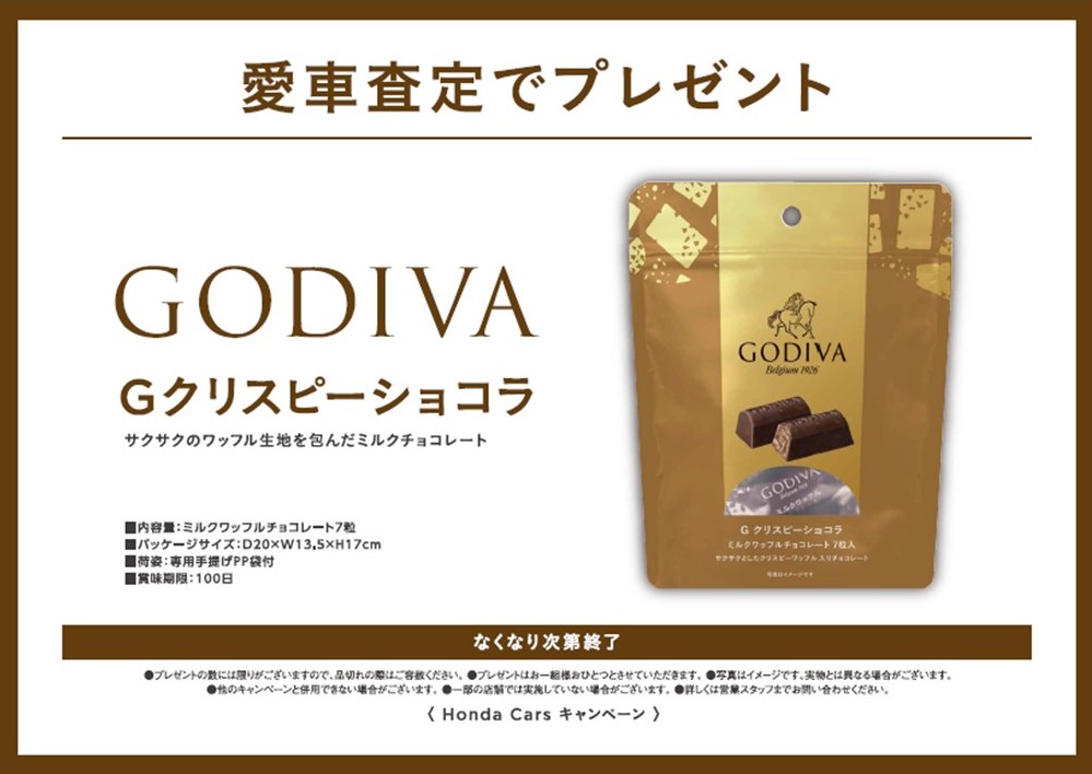 そして、お車の査定をしていただいたお客様にはGODIVA Gクリスピーショコラ