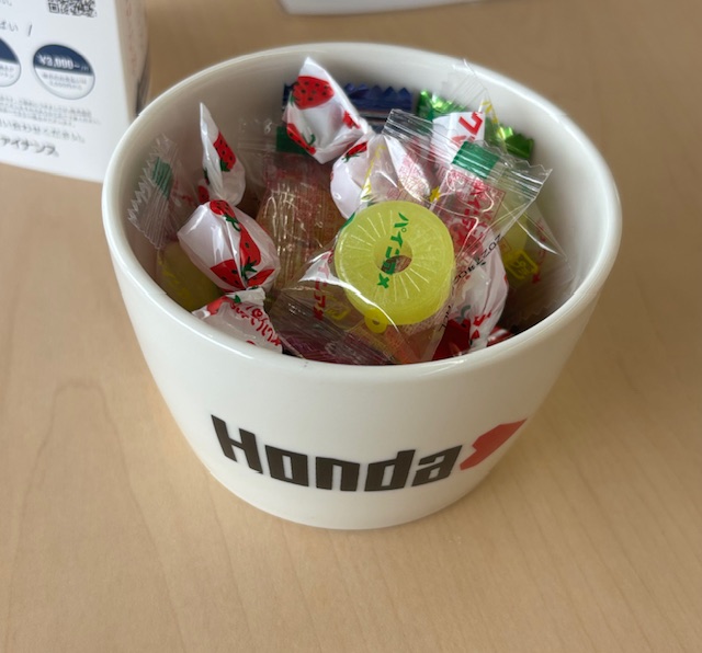 ショールームの各テーブルに、飴を置いております🍬