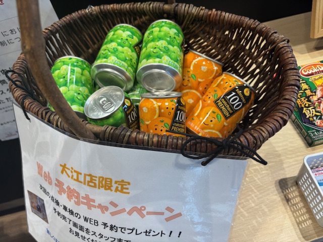 ただいま大江店では、ご来店時に次回のメンテナンスのWEB予約をしていただいた方にプレゼントをご用意しております🎀