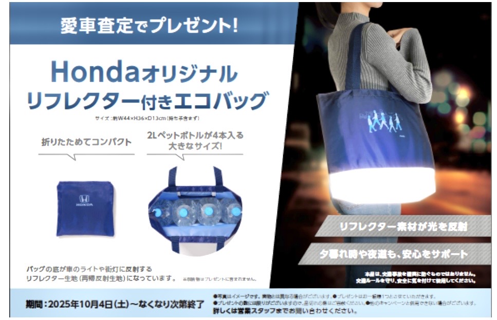 Hondaオリジナルリフレクター付きエコバッグプレゼント!