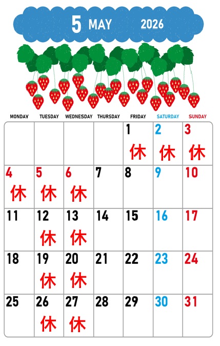 5月はGW休暇があり、5/1~5/6までお休みとなります。